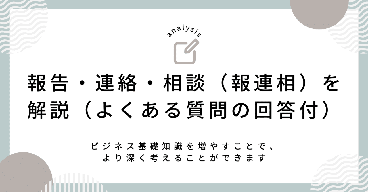 ただ、「報告・連絡・相談(報連相)が大事です」としか教えてくれない言葉でもあります。