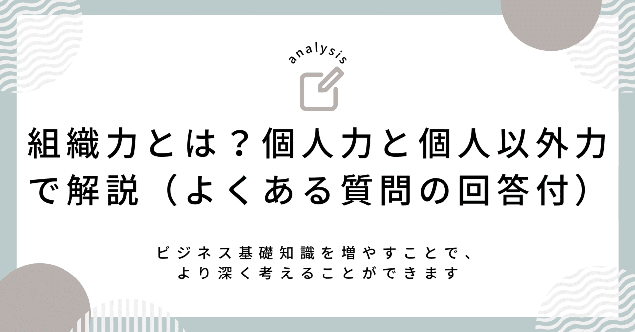 この記事では、組織力を「個人力」と、見落とされがちな「個人以外力」に分けて、わかりやすく解説します。